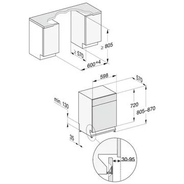 - Type d'ouverture de porte : si votre plinthe mesure 9 cm ou moins, seul un lave vaisselle porte à glissière compatible plinthes basses sera adapté à votre cuisine. Cependant, si votre plinthe mesure plus de 9 cm, tous les systèmes d'ouverture de porte seront compatibles avec votre cuisine.