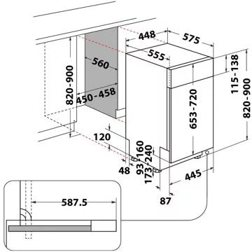 - Type d'ouverture de porte : si votre plinthe mesure 9 cm ou moins, seul un lave vaisselle porte à glissière compatible plinthes basses sera adapté à votre cuisine. Cependant, si votre plinthe mesure plus de 9 cm, tous les systèmes d'ouverture de porte seront compatibles avec votre cuisine.