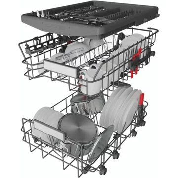 - Avantage du panier supérieur réglable en hauteur : Permet de laver des plats de grandes tailles ou de grands verres à pieds.