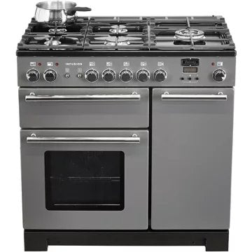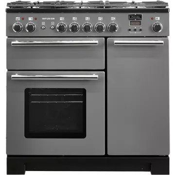 La grande cuisinière FALCON INFUSION 90CM GRIS ARDOISE/CHRM est dotée d'une plaque de cuisson avec 5 foyers gaz. Un modèle parfait pour cuisiner en même temps de nombreux ingrédients. Elle comprend également une plaque style Teppan Yaki pour laisser parler votre imagination en créant des recettes exotiques et originales.