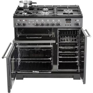 Avec la grande cuisinière FALCON INFUSION 90CM GRIS ARDOISE/CHRM, vous allez redécouvrir le plaisir de cuisiner au quotidien pour votre famille et vos amis grâce à sa large plaque de cuisson et à ses deux fours.