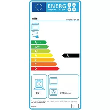 - Valeurs du label énergie : Label énergie A, Consommation en convection naturelle 0,79 kW, Consommation en chaleur tournante 0,83 kW