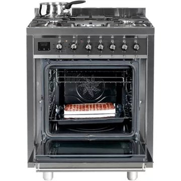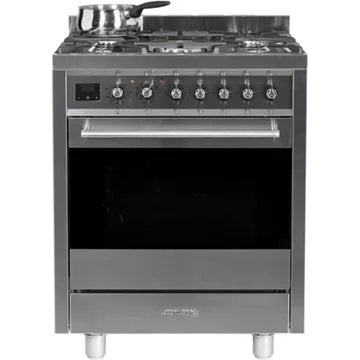 Si vous êtes en quête d'un appareil multitâche, la Cuisinière SMEG C7GPX9 vous ravira. Elle vous offrira la possibilité de cuire au gaz via son plan de cuisson ou à l'électricité grâce au four principal. Celui-ci fonctionne selon une chaleur tournante qui garantit une cuisson uniforme de vos plats.