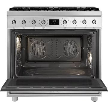 Doté de 6 foyers à gaz avec allumage intégré aux manettes et thermocouple de sécurité, le SMEG C9GMX2 offre une gamme complète de puissances, allant de 1.00 kW pour les mijotages délicats jusqu'à 4.20 kW pour les cuissons vives et rapides. Le four principal, d'un volume net de 115 litres, est équipé de 10 fonctions de cuisson, incluant gril moyen, gril fort ventilé et tournebroche, offrant ainsi une grande flexibilité pour toutes les préparations culinaires. La décongélation selon le temps et les diverses résistances permettent de s'adapter à tous les besoins. Les accessoires inclus, tels que le support en fonte pour Wok et la grille pour Moka, ajoutent encore à la polyvalence de ce piano de cuisson, faisant de lui un allié de taille pour les passionnés de gastronomie.