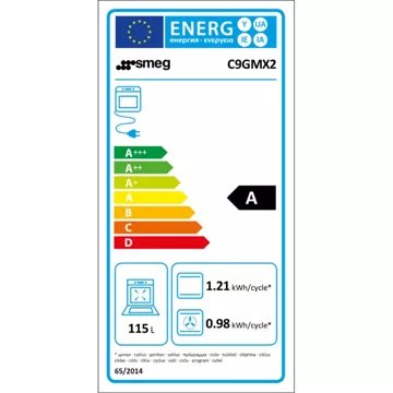 Le piano de cuisson gaz SMEG C9GMX2 se distingue par son esthétique Classica, avec des manettes en inox, une porte dotée de deux bandeaux horizontaux et un design carré séduisant. La couleur inox satiné et les poignées Smeg Classica en inox brossé confèrent à ce modèle une allure sophistiquée qui s'intègre parfaitement dans les cuisines modernes. Avec ses dimensions généreuses de 90x60 cm, ce centre de cuisson offre un espace de travail confortable. L'afficheur tactile, les grilles en fonte et le verre noir Eclipse de la porte témoignent de la qualité et de la fonctionnalité de cet appareil. La classe d'efficacité énergétique A assure une consommation optimisée, tandis que le système de nettoyage Vapor Clean facilite l'entretien du four principal à chaleur tournante.