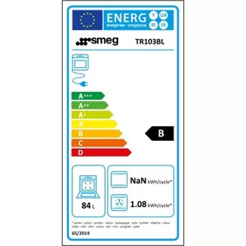 - Valeurs du label énergie : Label énergie A, Consommation en convection naturelle 1,08 kW, Consommation en chaleur tournante 0,77 kW