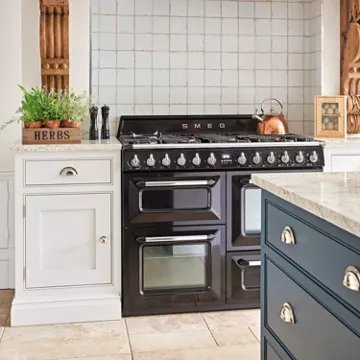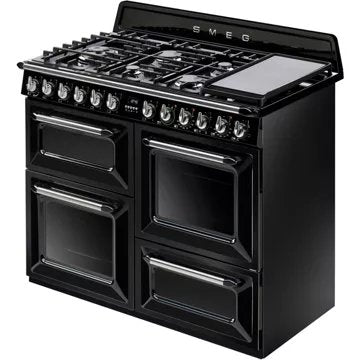 Le SMEG TR4110AZ ne lésine pas sur les caractéristiques techniques, avec un volume net de 61 litres pour les cavités des fours et des options de programmation de cuisson précises. La sécurité est assurée par un thermostat de sécurité et un système de refroidissement tangentiel. L'éclairage halogène offre une visibilité parfaite et les portes démontables avec vitres thermo-réfléchissantes facilitent l'accès et le nettoyage. Les accessoires inclus, tels que les grilles de four avec arrêt arrière et le support en fonte pour Wok, maximisent les possibilités culinaires. Avec une puissance nominale électrique de 8400W et une compatibilité avec les tensions de 220-240V ou 380-415V, ce piano de cuisson est conçu pour s'adapter aux besoins énergétiques modernes tout en offrant une expérience de cuisson exceptionnelle.