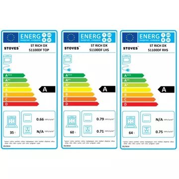 Ce ne sont pas moins de 3 fours électriques et un maxi grill que vous offre la cuisinière STOVES RICHMOND DELUXE 110 DFT. Ils fonctionnent selon deux types de chaleur : tournante et convection naturelle. Le four principal, avec une cavité XL de 70 L, propose 11 programmes pour des modes de cuissons variées, dont un mode pizza, gril ou encore pain.