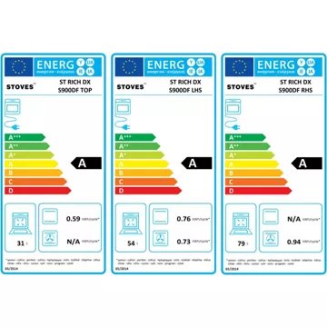 Le centre de cuisson STOVES RICHMOND DELUXE 90 DFT est doté de 2 fours et d'un maxi gril. Le maxi gril, situé en haut à gauche, est optimisé pour la cuisson des viandes. Le four de la cavité située à droite de l'appareil peut être séparé en 2 fours et est équipé d'une fonction mijotage, pain et maintien au chaud. Enfin, le troisième four électrique à chaleur ventilée comporte un volume utile de 54 litres.