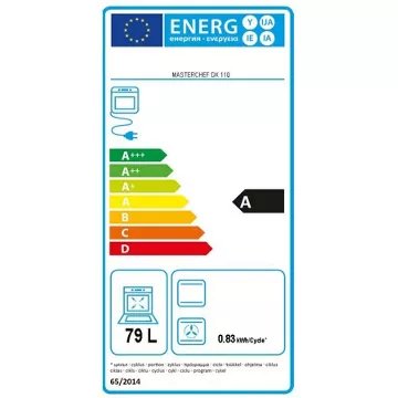 - Valeurs du label énergie : Label énergie A, Consommation en convection naturelle 0,88 kW, Consommation en chaleur tournante 0,83 kW