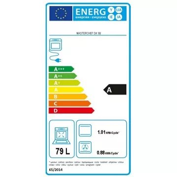 - Valeurs du label énergie : Label énergie A, Consommation en convection naturelle 0,88 kW, Consommation en chaleur tournante 0,88 kW