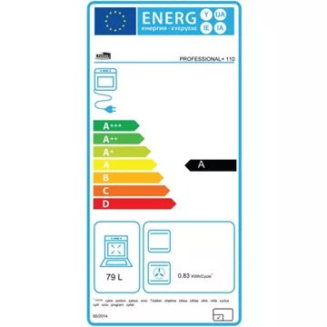 - Valeurs du label énergie : Label énergie A, Consommation en convection naturelle 0,83 kW, Consommation en chaleur tournante 0,83 kW