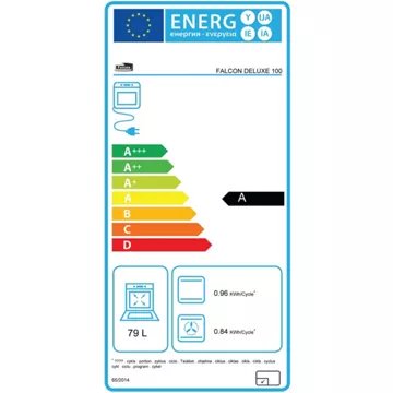 - Valeurs du label énergie : Label énergie A, Consommation en convection naturelle 0,78 kW, Consommation en chaleur tournante 0,84 kW