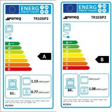 - Valeurs du label énergie : Label énergie A, Consommation en convection naturelle 1,08 kW, Consommation en chaleur tournante 0,77 kW