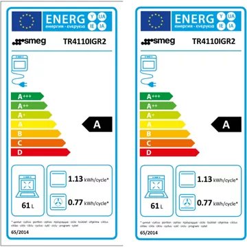 - Valeurs du label énergie : Label énergie A, Consommation en convection naturelle 0,77 kW, Consommation en chaleur tournante 0,77 kW