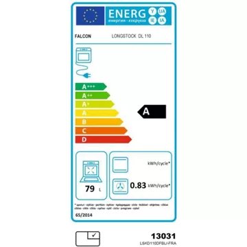 - Valeurs du label énergie : Label énergie A, Consommation en convection naturelle 0,88 kW, Consommation en chaleur tournante 0,83 kW