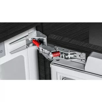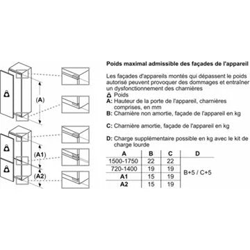 - Type de porte : à charnière auto porteuse( ou à pantographe ), l'habillage décoratif est fixé directement sur la porte du réfrigérateur. Avec ce système porte-sur-porte, elle peut s'ouvrir davantage et le système est plus robuste.