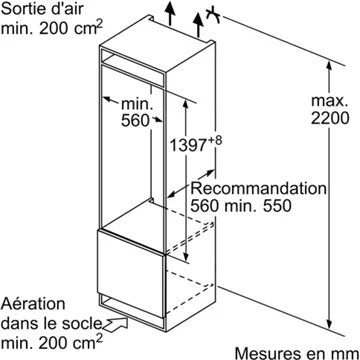 - Installation : porte sans débord, le réfrigérateur peut être installé contre le mur
