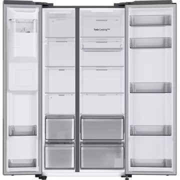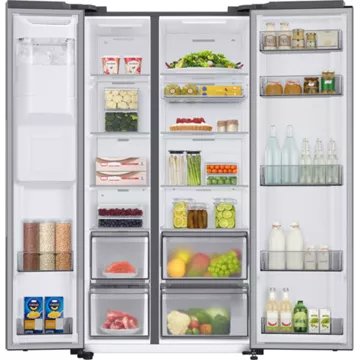 Samsung a équipé son réfrigérateur Side By Side RS68CG883ES9 d'un froid ventilé Plus Twin Cooling : ce système de froid contrôle et optimise la température et l'humidité et prévient la formation de givre dans toute la cavité de l'appareil. Son innovation SpaceMax convertit une partie du congélateur en réfrigérateur pour s'adapter à vos besoins. Résultat : vous avez entre les mains l'appareil idéal pour votre quotidien !