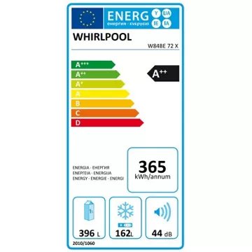 Le grand volume du réfrigérateur combiné WHIRLPOOL W84BE72X, en fait un appareil idéal pour toute la famille. De classe énergétique A++, il vous offre une performance maximale avec une faible consommation d'énergie. Et avec son niveau sonore de seulement 44 dB, qui le rend particulièrement silencieux, il se fait oublier dans la cuisine.