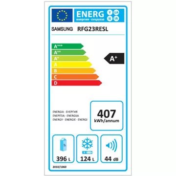 Avec son volume net total de 520 litres, le réfrigérateur RFG23RESL de Samsung combine un grand réfrigérateur 2 portes au-dessus d'un congélateur. Doté du système Twin Cooling, le compresseur alimente indépendamment chaque cuve pour un froid parfait et un taux d'humidité contrôlé dans la partie réfrigérateur. Grâce au froid ventilé intégral, les aliments sont mieux conservés, sans présence de givre dans le congélateur !