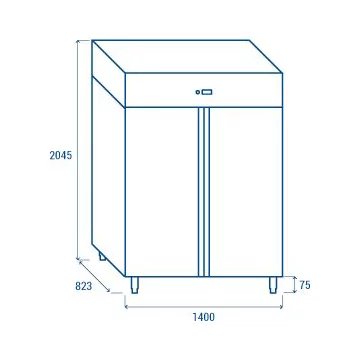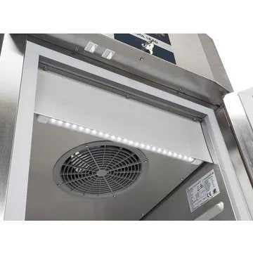 Armoire positive chr de la marque Cool Head | Caractéristiques : Corps externe et interne en acier inoxydable2 portes"Thermo-braker" en plastique anti-condensation comme armature du corpsRéfrigération ventiléePoids net de 165 kilosEvaporateur avec couvercle anti-corrosionDégivrage par gaz chaudMousse cyclopentane (épaisseur 80mm)Coins internes arrondis pour un nettoyage facileThermostat digitalInterrupteur rétro-éclairé (Couleur Blanc)Clayettes réglables GN2/1 : 3 + 1N.4 Pieds réglables en acier - (Roues avec option frein)
