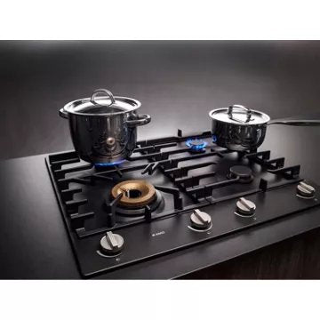 La Table gaz ASKO HG1666AB, d'une largeur de 60 cm, est conçue pour les amateurs de cuisine qui recherchent à la fois précision et efficacité. Dotée de 3 brûleurs A+ et d'un brûleur Wok en laiton, cette table à gaz assure un rendement élevé et une rapidité de cuisson inégalée. Chaque brûleur est conçu avec un diamètre optimisé, garantissant une orientation précise des flammes et un contrôle absolu de la température. Le plan d'égouttement émaillé en noir graphite, associé à des brûleurs surélevés, empêche les taches d'huile de s'incruster, facilitant ainsi l'entretien et préservant l'esthétique de la table.