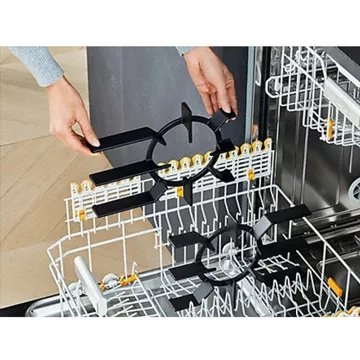 La Table gaz MIELE KM 2010, avec son plan de cuisson en inox et ses supports de casserole en fonte émaillée noir mat, allie durabilité et esthétique professionnelle. Conçue pour s'intégrer parfaitement dans les cuisines modernes, cette table de cuisson indépendante offre une largeur de 650 mm et une profondeur de 520 mm, s'encastre aisément avec des dimensions de découpe de 560 x 480 mm. La qualité des matériaux utilisés, comme l'inox et la fonte émaillée, garantit une résistance aux chocs et une facilité d'entretien, notamment grâce à la technologie PerfectClean des brûleurs qui simplifie le nettoyage.