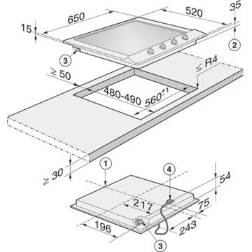 - LxHxP (encastrement) : 56 x 3.5 x 48 cm