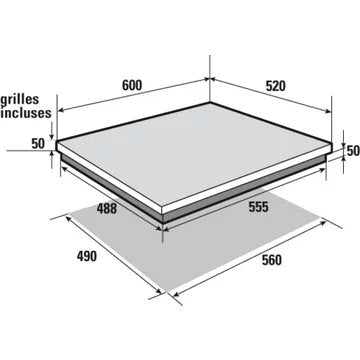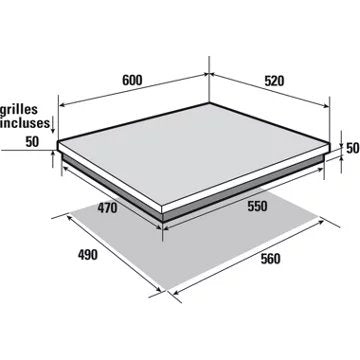- LxHxP (encastrement) : 55 x 5 x 47 cm