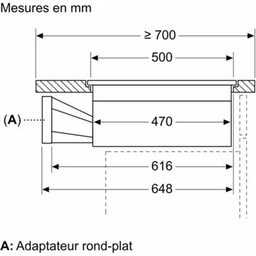 - Installation du kit recyclage sans gaine : permet une installation optimisée de votre table évitant ainsi l'utilisation de gaines et de coudes. L'extraction de l'air se fait directement dans le vide sanitaire de votre meuble.