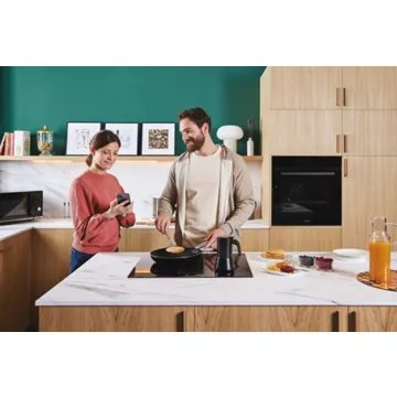 La CANDY CIH614CF est équipée d'une hotte automatique qui ajuste son niveau d'aspiration en fonction de l'activité de cuisson, assurant un air frais en permanence. Avec trois niveaux d'aspiration plus un mode Booster, la hotte peut atteindre une puissance d'extraction allant jusqu'à 477 m3/h. La fonction 'Maintien au chaud' est idéale pour servir les plats toujours à la bonne température. La plaque propose également neuf niveaux de cuisson, des commandes groupées frontales pour une utilisation intuitive, et des fonctions de sécurité comme la détection de casseroles et l'anti-débordement. Tout est pensé pour une expérience de cuisson agréable et sûre.