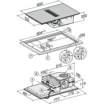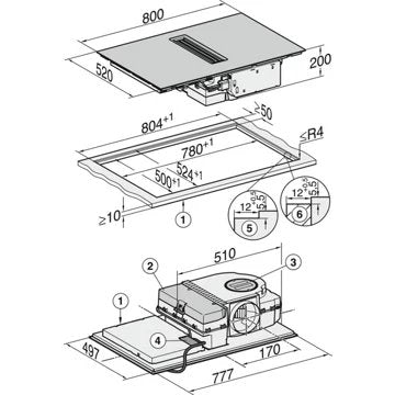 - Type de table : induction avec hotte intégrée, solution pratique et esthétique pour combiner la table de cuisson et la hotte. Elle nécessite un encastrement spécifique (voir infos dimensions).