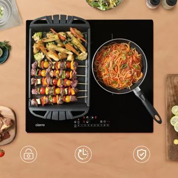 CIARRA CD3BFBIH6500W Plaque de cuisson Induction, 3 foyers avec booster individuel sur chaque zone, qui permet de chauffer la zone à puissance maximale pour une durée de 5 minutes.