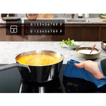 Maintenez les réglages de cuisson en continu grâce à la fonction de verrouillage des touches intégrée à la table de cuisson ELECTROLUX EIB60320CK. Les réglages resteront enclenchés même en cas de manipulation accidentelle du bandeau de commande : idéal pour essuyer les débordements d'eau sans affecter la cuisson en cours.