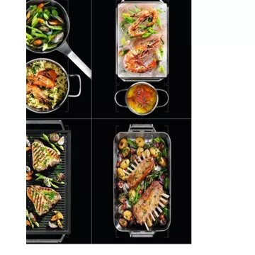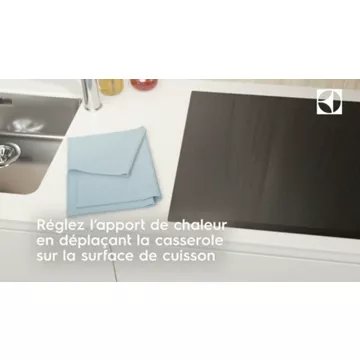 - Foyer modulable : zone multi températures, permet de déplacer votre casserolerie au fil de la cuisson ( bouillir, cuire, maintenir au chaud...) sans modifier les réglages de température.