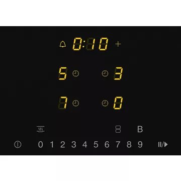 - Sécurités : arrêt automatique, verrouillage du clavier, témoin de chaleur résiduelle, détection d'absence de récipient, détection de petits objets, témoin de mise sous tension