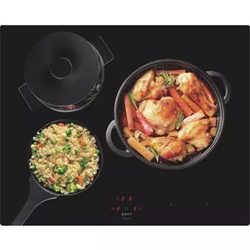 La table induction NOVY 1752 se distingue par son design épuré et ses bords rodés qui ajoutent une touche de sophistication à toute cuisine moderne. Avec une surface en verre facile à nettoyer et des commandes Touch sensitives, cette plaque de cuisson est non seulement esthétique mais aussi pratique. Les informations s'affichent en rouge, offrant une visibilité claire et immédiate. La table de cuisson de 65 cm intègre trois zones de cuisson puissantes : 2300/3000 W pour la zone droite de 290 mm, 2300/3000 W pour la zone avant gauche de 200 mm et 1100/1400 W pour la zone arrière gauche de 200 mm. Ces zones permettent une cuisson précise et adaptée à différents formats de casseroles, grâce à l'auto-détection.