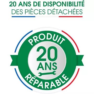 - Disponibilité des pièces détachées (données fournisseur) : Pendant 20 ans, à compter de la date d'achat