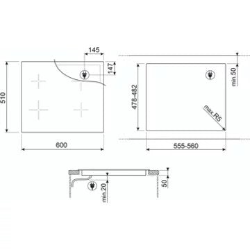 - LxHxP (encastrement) : 55.5 x 7 x 47.8 cm