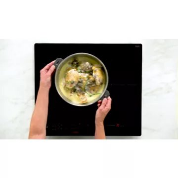 La table à induction WHIRLPOOL WFS7560NE est équipée du système FlexSide. Cela signifie que la zone de 4 inducteurs peut être utilisée comme 2 zones indépendantes ou comme une seule grande surface de cuisson. Cette deuxième configuration est idéale pour déplacer vos récipients et utiliser vos plus grands plats.