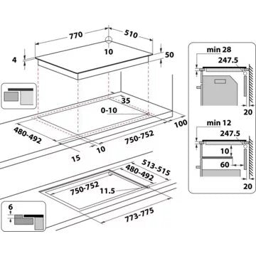 Dimensions- LxHxP (encastrement) : 75 x 2.8 x 48 cm